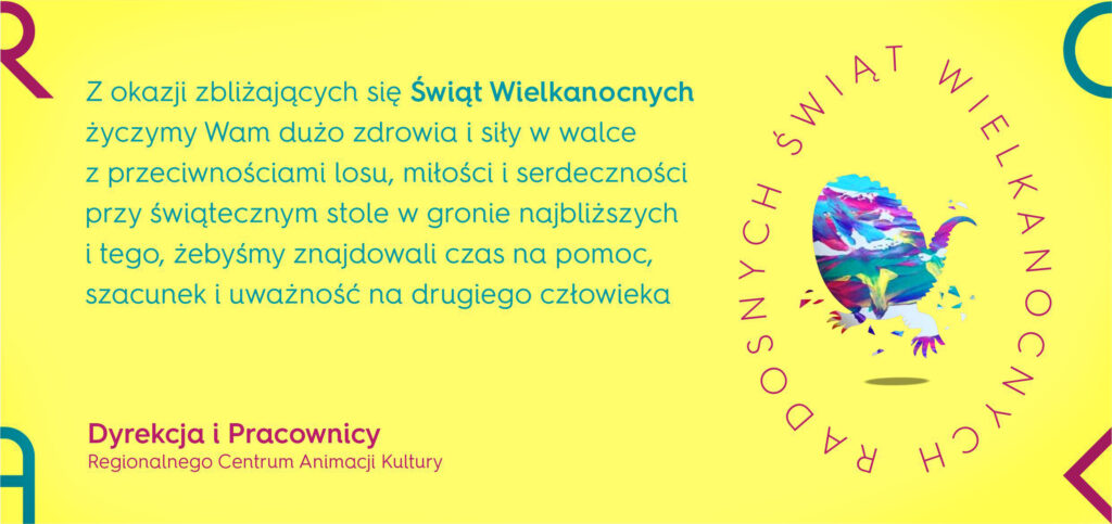 Dzień 2 – czas na kolejne jajeczne przygody! Hej, hej! Wasz ukochany Wielkanocny RCAK-owy Zajączek melduje się z nową porcją świątecznej zabawy! Wczoraj było wspaniale – dziękuję wszystkim, którzy stawili się w parku przy Sienkiewicza 11 i dzielnie szukali jajek! Ale to jeszcze nie koniec!10 kwietnia o godz. 11:00 widzimy się ponownie – oczywiście w zabytkowym parku przy Regionalnym Centrum Animacji Kultury w Zielonej Górze! Ukryłem nowe kolorowe jajka – jeszcze sprytniej i jeszcze ciekawiej!Czy znajdziesz je wszystkie? Zapraszam wszystkich: dzieci, młodzież, dorosłych i seniorów – bo jajka nie wybierają! Każdy ma szansę na nagrodę niespodziankę! Regulamin i szczegóły znajdziesz tutaj: https://rcak.pl/wielkanocne-poszukiwanie-jajek-dzien-2/ Nie zapomnijcie dobrego humoru, wygodnych butów i czujnych oczu – bo Dzień 2 to nowe wyzwania i… jeszcze więcej zabawy! Do zobaczenia w parku!– Wielkanocny RCAK-owy Zajączek KONKURS WIELKANOCNY REGULAMIN