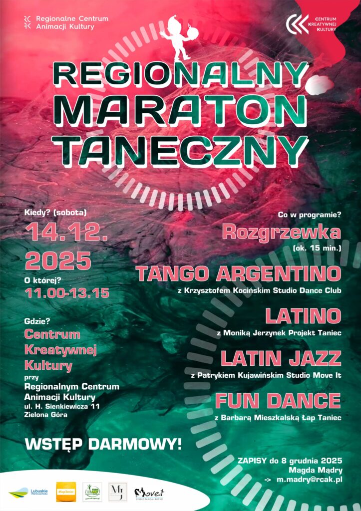 Termin: 14 grudnia 2025 Godziny: 11:00–13:15 Miejsce: Regionalne Centrum Animacji Kultury / Centrum Kreatywnej Kultury, ul. H. Sienkiewicza 11, Zielona Góra